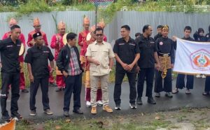 MARTAPURA – Diiringi sinoman hadrah dan atraksi silat, Irwan Bora resmi menyerahkan berkas dan menjadi bakal calon ketua Komite Olahraga Nasional (KONI) Banjar 2026-2030 ke Tim Penjaringan dan Penyaringan Bakal Calon Ketua KONI Banjar di Sekretariat KONI Banjar, Jl Albasia, Martapura, Kamis (16/4/2026) siang.
